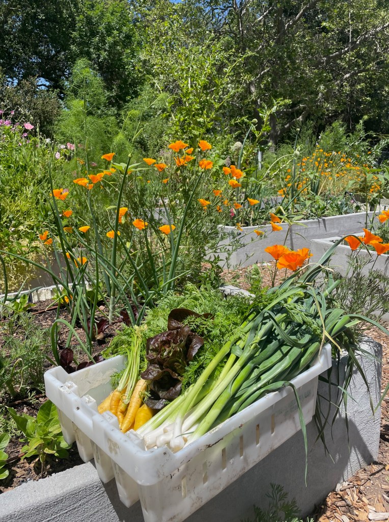 The Springs Garden is entering the busy growing season of late Spring to early Fall. This abundant time of year has the garden producing good amounts of leeks, garlic, broccoli, kale, peas, fava beans, herbs and flowers. We are making room for summer crops where we can and preparing for improvement projects such as a sink/washstation and an artistic paint job for the tool shed. This is a public, community garden, all who wish to volunteer can email us here at sonomaspringshall@gmail.com. Community members will receive a simple training in the systems of the garden and goals for current and future development, sign a simple insurance waiver, then can participate on any level desired. Let’s keep Growin’ in the Springs!