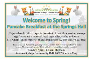 This Sunday, April 14th, 9:am – 11:30am, the best community breakfast around is back at the Springs Hall!