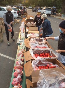 The Springs Hall has been working with the amazing local support service Food For All / Comida Para Todos, to coordinate collection and distribution with local farms for excess local, organic produce. Tomatoes were gleaned from Oak Hill Farm, which also gave another generous donation of lemon cucumbers, jalapenos, and apples. Paul’s Produce added a huge amount of peppers, little gem lettuces, and more. The Sonoma Garden Park contributed great heirloom apples. Flowery school garden provided cherry tomatoes, tomatillos and more.