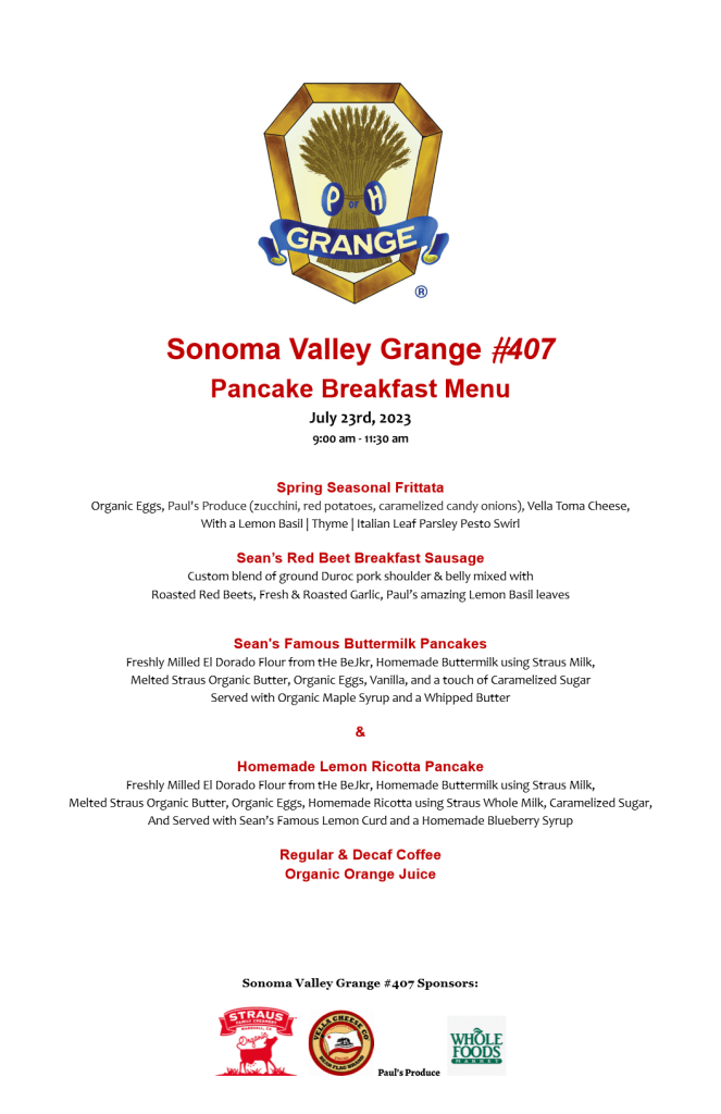 Pancake Breakfast Sunday July 23rd 9:am-11:30pm